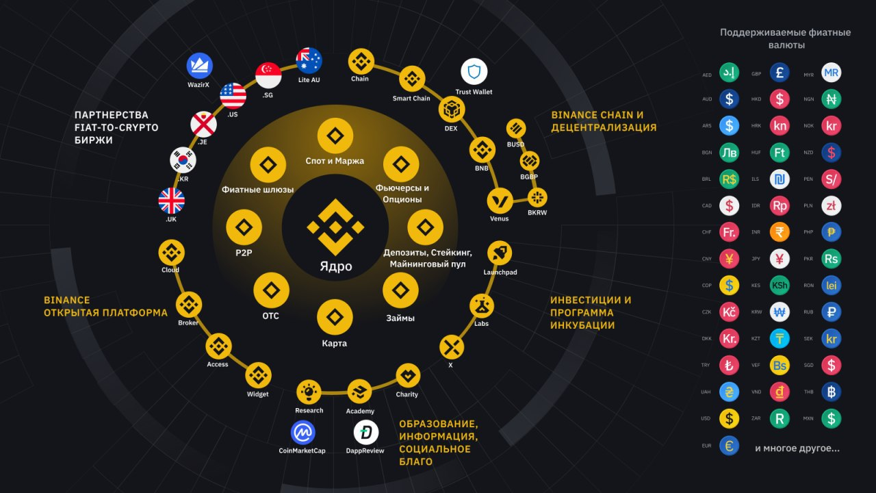 Г.К.: Сейчас Binance – это глобальная экосистема, которую многие сравнивают с Google и Amazon. Экосистема Binance включает в себя торговые площадки, информационные ресурсы, учебный и исследовательский центры, некоммерческий благотворительный фонд, инкубационные программы и многое другое.