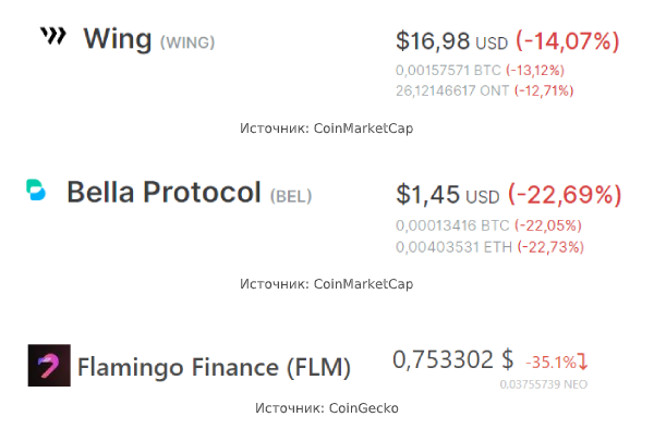 Помимо ALPHA, Binance представила уже три токена на площадке Launchpool: Wing (WING), Bella Protocol (BAL) и Flamingo Finance (FLM). На момент написания материала все три актива находятся в убытках минимум на 14%: WING (-14,07%), BEL (-22,69%), FLM (-35,1%).