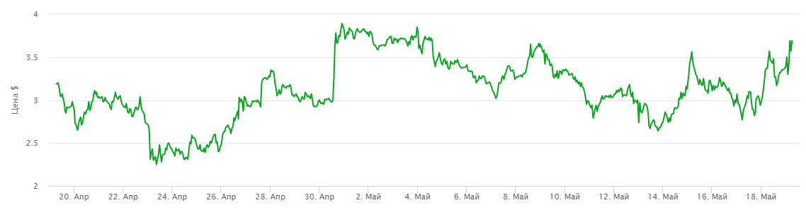 Cразу после заявления о листинге токена POLS на платформе Binance, цена монеты подорожала на 2,65% и составляет $3,67.