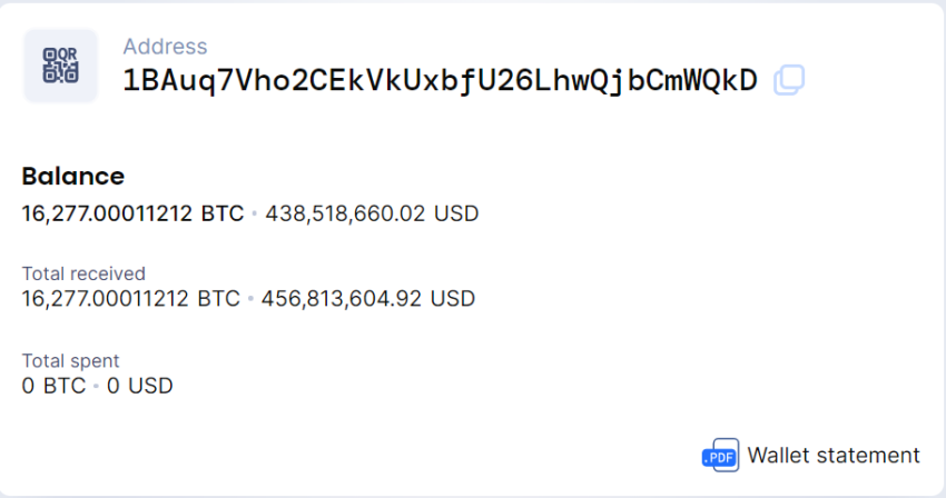 На биткоин-адресе SAFU хранится около 16 000 BTC – на момент написания это примерно $438 518 660.