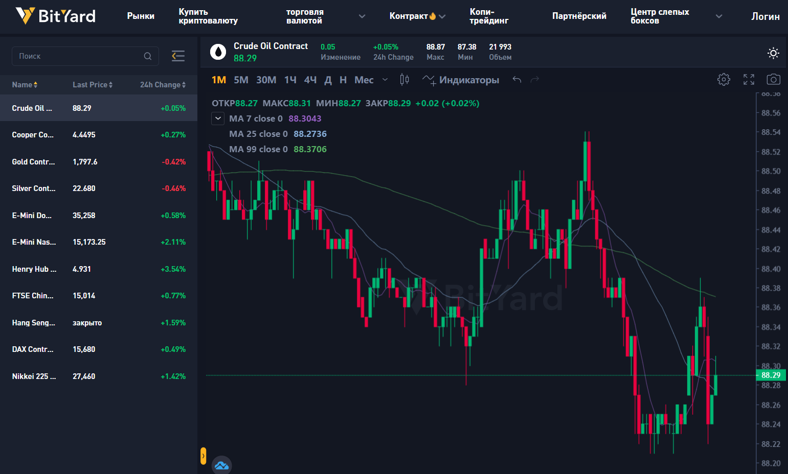- Платформа с разнообразными продуктами – BitYard поддерживает спотовую криптоторговлю и CFD. Пользователи также могут торговать индексами, сырьевыми товарами и CFD как на Forex.
