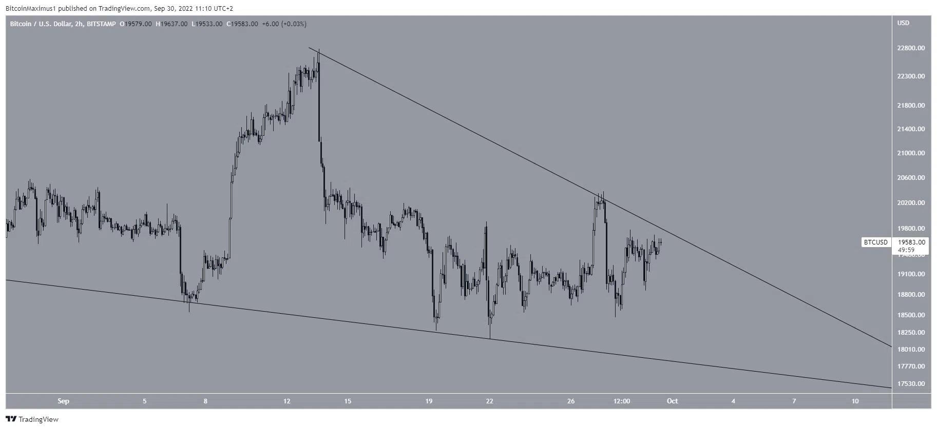 Кроме того, цена, похоже, торгуется внутри нисходящего клина, который считается бычьим паттерном. Потенциальный прорыв верхней границы обусловит укрепление BTC в 4 квартале 2022 года.