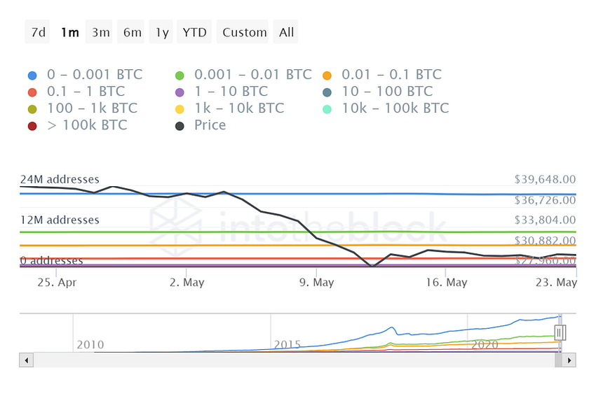 Громкий коллапс блокчейн-экосистемы Terra побудил крупных инвесторов еще больше закупиться биткоином, считают в IntoTheBlock