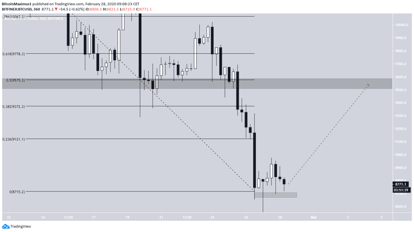 Если быкам удастся преодолеть отметку $8920, далее важное сопротивление вступит в игру на $9500 (уровень Фибо 0.5 коррекции предыдущего снижения). Также незначительное сопротивление отмечается на $9120 и $9370.