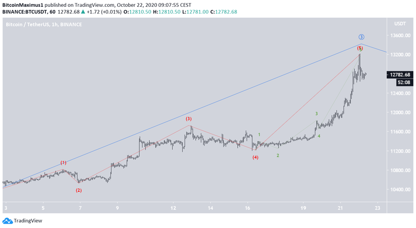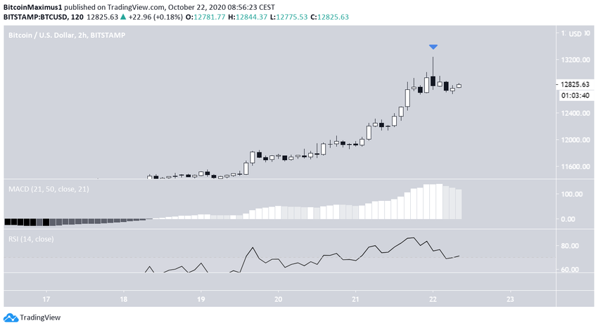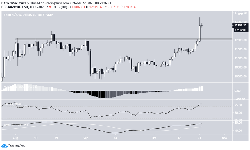Курс биткоина (ВТС) продолжил рост, сформировав на графике еще одну массивную свечу бычьего поглощения и пробив область сопротивления $12 050. Цена достигла максимума на $13 235, после чего откатилась к $12 800.