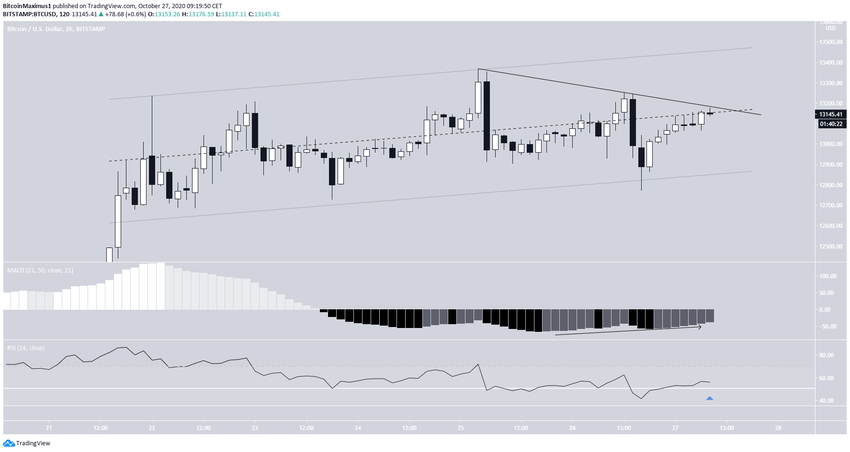 Курс биткоина (BTC) отметил 22 октября максимум на $13 235 и с тех пор торгуется внутри параллельного восходящего канала.