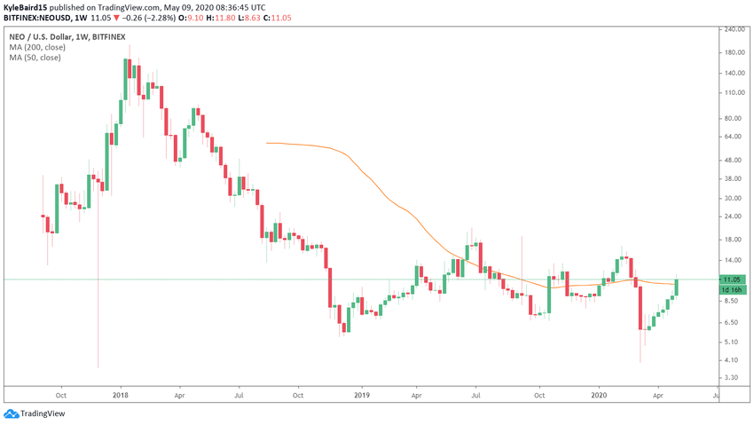 NEO, который часто называют «китайским Ethereum», в последние недели демонстрировал удручающую динамику, торгуясь в диапазоне $7-8, на 96% ниже своего исторического максимума. В результате недавнего бычьего прорыва курс валюты взлетел на 26% до 2-месячного максимума $11.70.