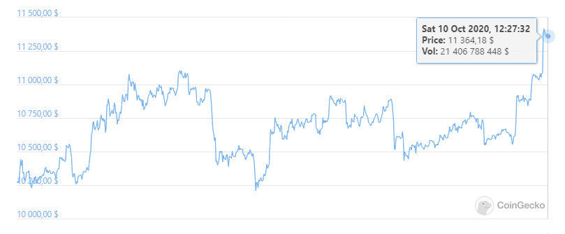 На момент написания материала цена BTC/USDT составляет $11 364.