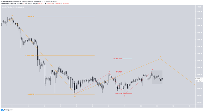 Впрочем, цена достигла еще одного вероятного уровня завершения коррекции. Речь идет об уровне $10 467, где соотношение волн W:Y равняется 1:1. От него может начаться снижение.