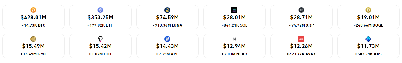 SponsoredНа третьем месте по ликвидации за последние 24 часа оказался альткоин terra (LUNA), где объем составил почти $75 млн. Всего же за последние сутки рынок снес ордера порядка 400 000 трейдеров.