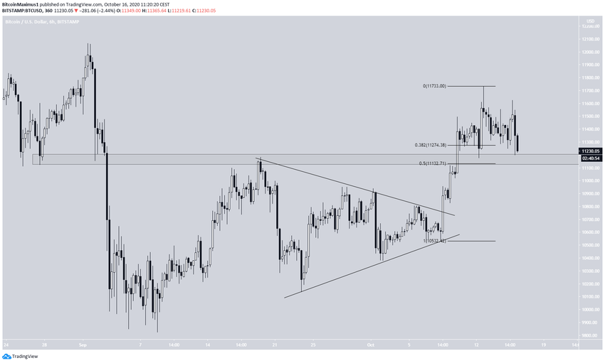 BTC совершил 9 октября бычий пробой симметричного треугольника, отметив 12 октября максимум на $11 731.