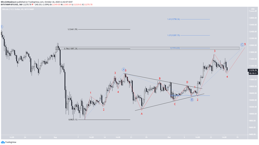 «Если наш анализ верен, изначально цена может дотянуться до уровней $11 918 и $12 231, чтобы завершить волну 5».