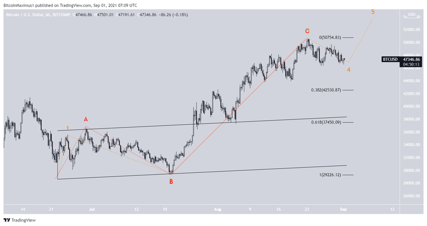 Тем не менее нельзя сбрасывать со счетов возможность коррекции до $42 400. В любом случае прорыв, который завершит формирование подволны В, кажется наиболее вероятным сценарием.