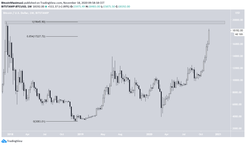 Следующая область важного сопротивления располагается на $19 645 (исторический максимум 2017 года).