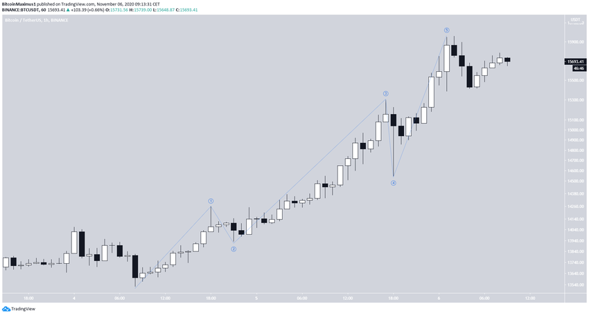 Курс биткоина сформировал на дневном графике свечу бычьего поглощения, отметив максимум на $15 570 и укрепившись внутри дня на 10%.