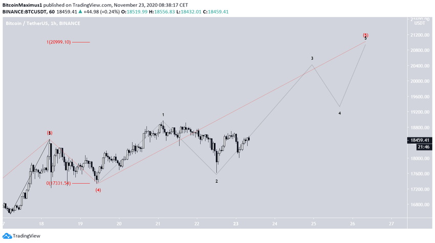 Вероятной целью завершения такого роста может стать область $20 859-$20 999 (уровень Фибо 3.61 расширения подволны 1 и проекция длины подволн 1-3).