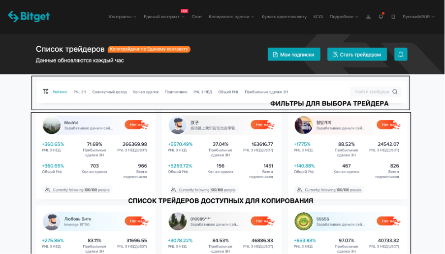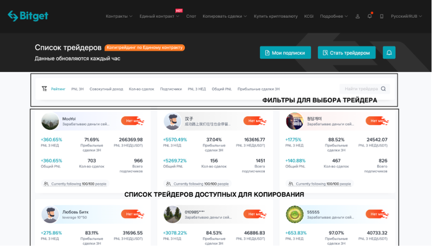 Как найти на Bitget профессиональных трейдеров и подписаться на них?