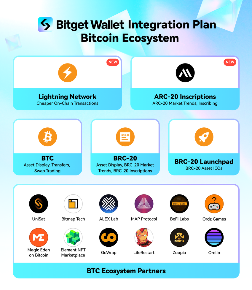 Ведущий в мире торговый кошелек Web3, Bitget Wallet, объявил о поддержке надписей ARC-20 и интеграции Bitcoin Lightning Network в свою последнюю версию, что еще больше усиливает поддержку экосистемы Биткоин.