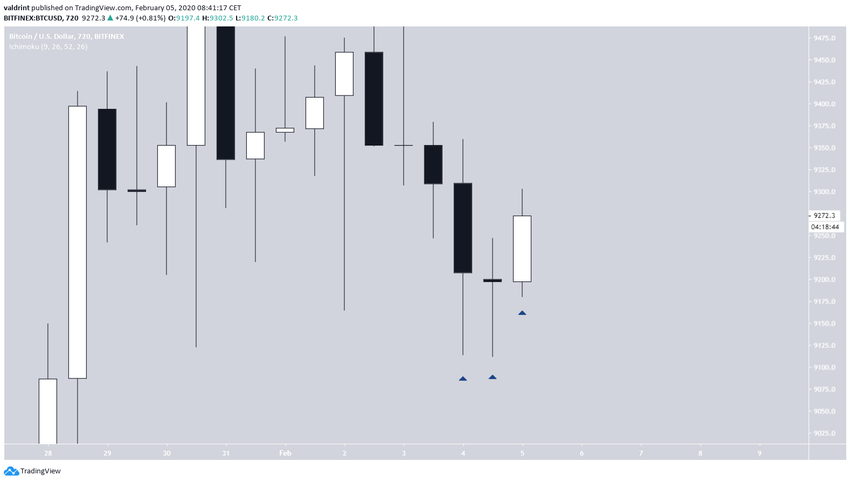 Курс биткоина сформировал поддержку в области $9150. Как только цена достигла ее, она сформировала на свечном графике длинные нижние фитили и начала расти. Аналогичная ситуация наблюдалась и вчера.