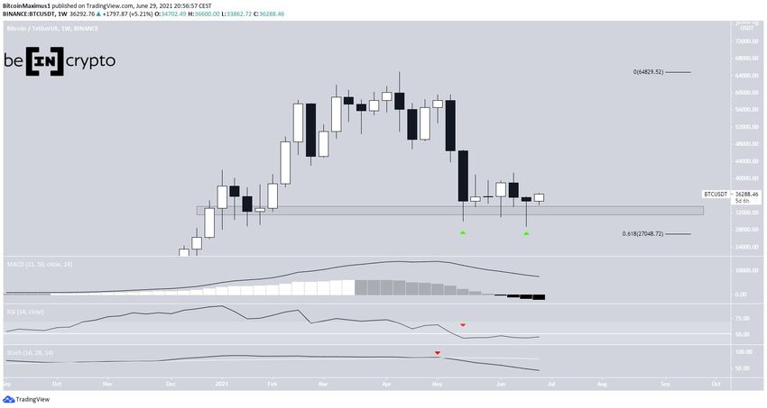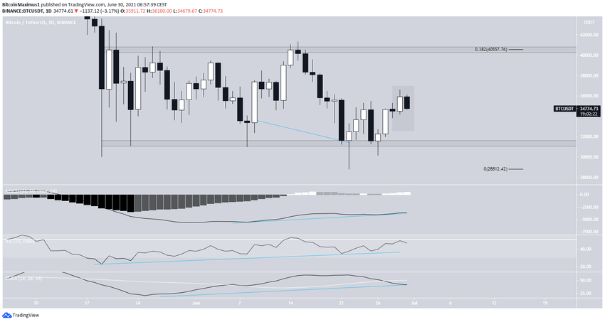 Биткоин (BTC) совершил 22 июня отскок и с тех пор пытался укрепиться. В итоге 29 июня цена сформировала локальный максимум на $36 623.