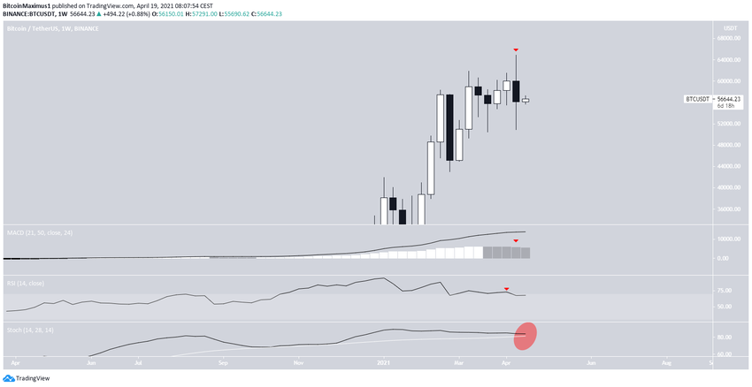 Биткоин (ВТС) пережил яркую неделю с 12 по 18 апреля. За это время цена успела передвинуть исторический максимум на $64 854. Это произошло 14 апреля.