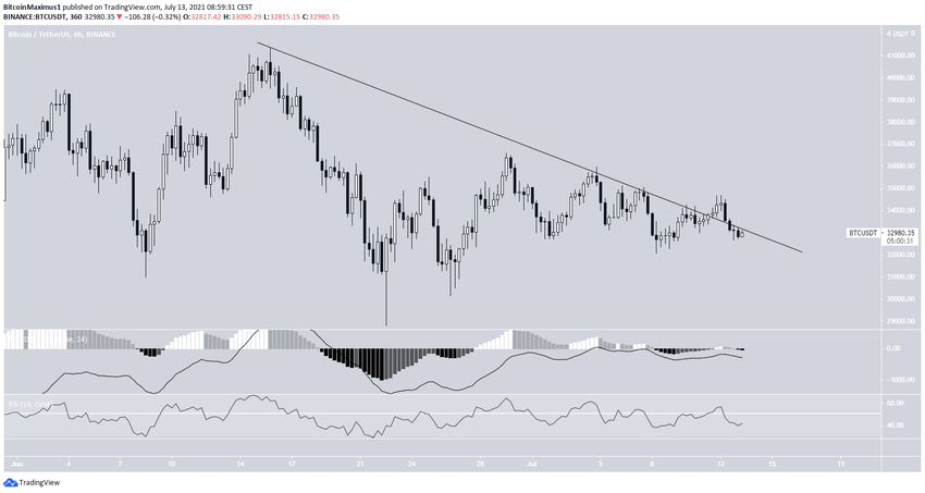 Биткоин снизился по итогам 12 июля, сформировав свечу медвежьего поглощения и отметив минимум на $32 658. BTC все еще торгуется внутри краткосрочного нисходящего параллельного канала и может совершить его бычий прорыв.