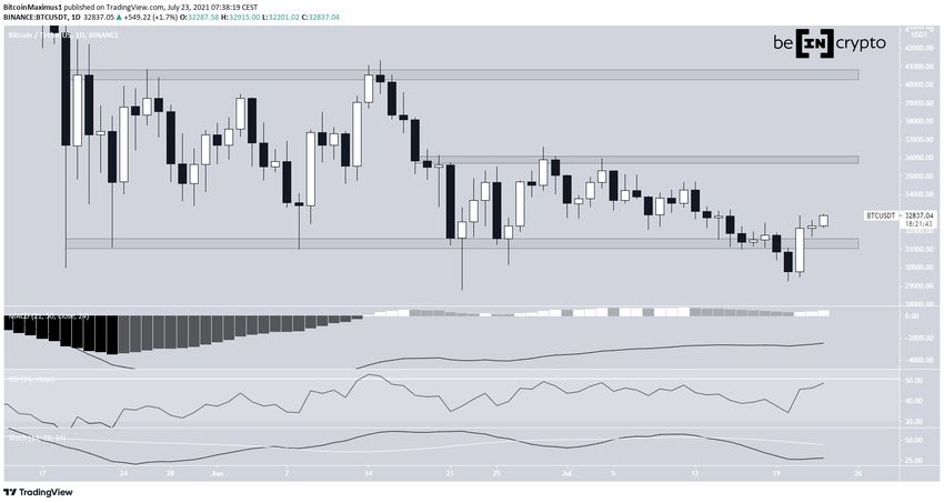 Биткоин (BTC) сформировал 21 июля свечу бычьего поглощения, а на следующий день подрос еще немного, создав на графике еще одну небольшую бычью свечу.