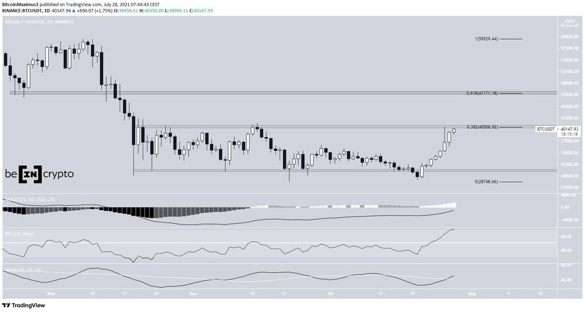 После отскока 26 июля биткоин снова пытается пробить область сопротивления $40 550. Ожидается, что, несмотря на сигналы краткосрочного ослабления BTC, в конечном итоге ему это удастся.