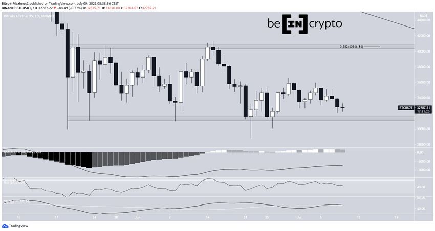 Биткоин (BTC) ощутимо снизился 8 июля, достигнув минимума на $32 077. Впрочем, цена совершила отсюда отскок и сформировала относительно длинный нижний фитиль.