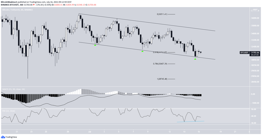 На более коротком 6-часовом графике биткоин с 29 июня торгуется внутри нисходящего параллельного канала.