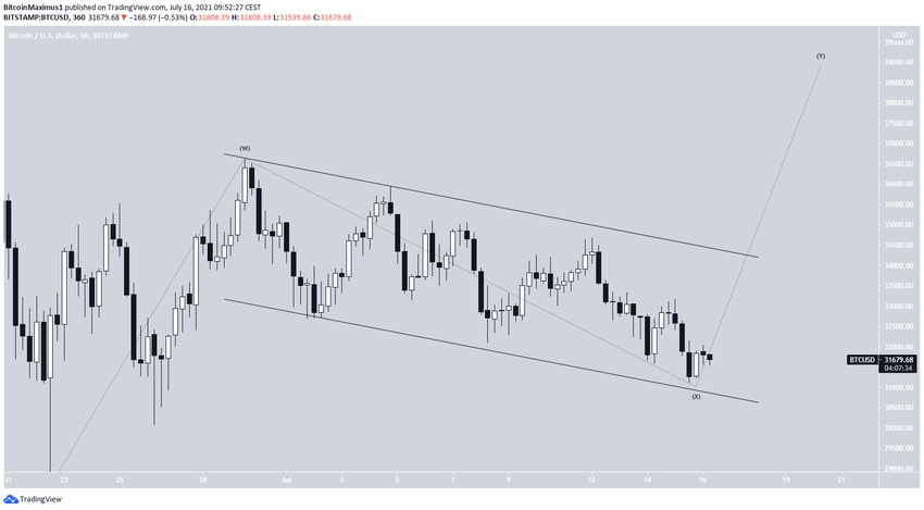 Согласно второму сценарию, биткоин все еще находится в волне 4, поэтому нам следует ожидать еще одного медвежьего хода, прежде чем структура будет завершена. Хотя долгосрочные прогнозы в этих двух вариантах разнятся, краткосрочная ценовая динамика в обоих случаях будет выглядеть схоже.