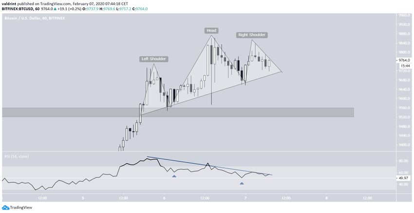 После бычьего прорыва биткоин сформировал на графике паттерн, напоминающий модель «голова-и-плечи». Этот паттерн традиционно считается фигурой медвежьего разворота. Его медвежий прорыв снова приведет цену в область поддержки.