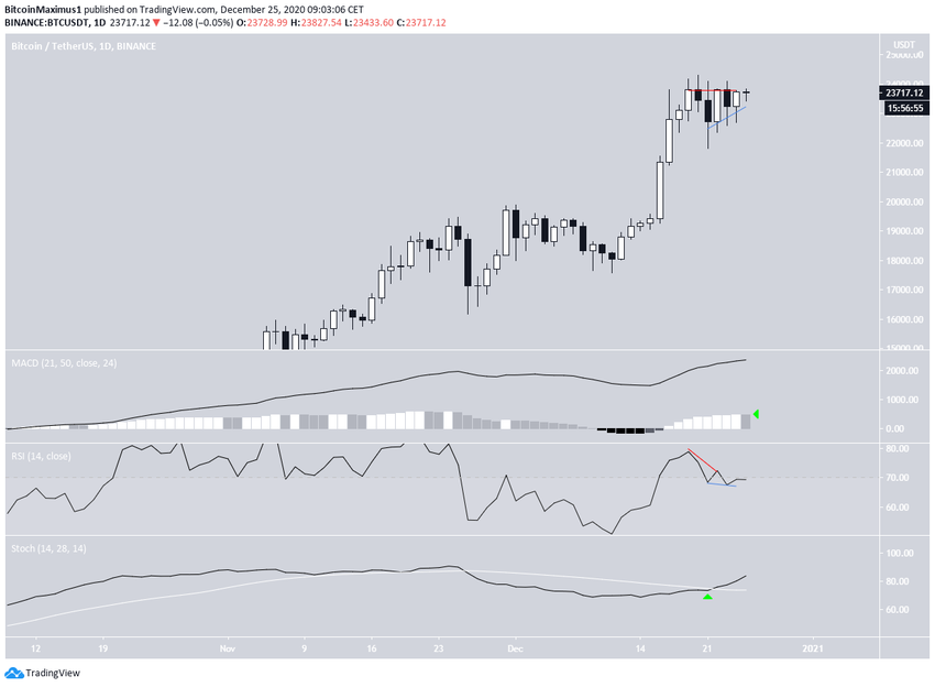 На более краткосрочном, 2-часовом, таймфрейме также подтверждается вероятность подобного пробоя. Хотя биткоин держится очень близко к линии сопротивления, индикаторы MACD и RSI поддерживают продолжение роста и возможного бычьего прорыва.