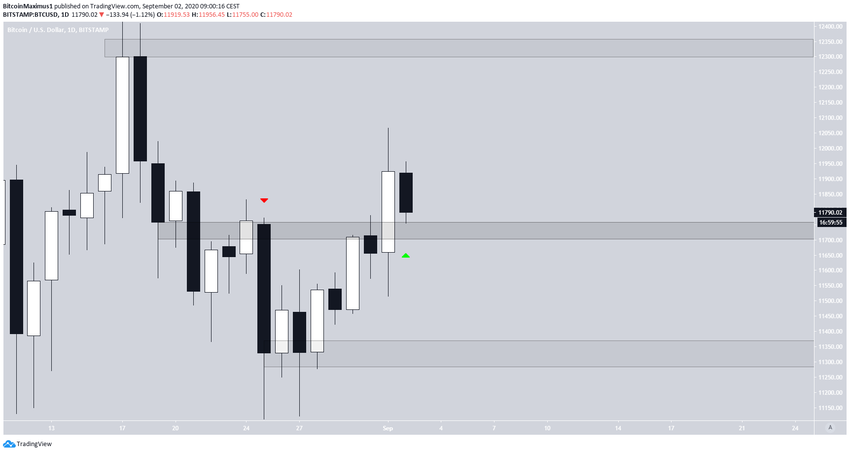 Курс биткоина (BTC) откатился от психологической отметки $12 000 1 сентября и с тех пор находится под давлением. После коррекции криптовалюта может предпринять еще одну попытку тестирования этого уровня, которая, скорее всего, окажется успешной.
