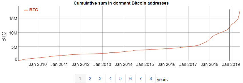 Согласно данным, предоставленным BitInfoCharts, более 11 миллионов биткойнов за последний год не покинули своих кошельков.