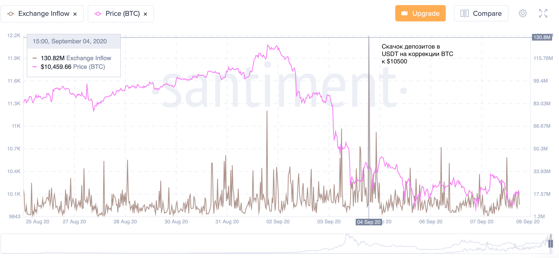 SponsoredДанные по притоку USDT на централизованные биржи. Источник: Santiment