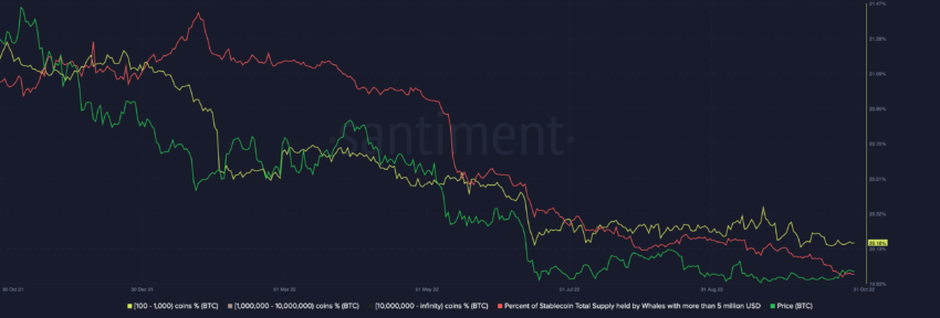 В целом киты по-прежнему скептически относятся к движению цены BTC, а ценовое действие все еще находится в сильной просадке.