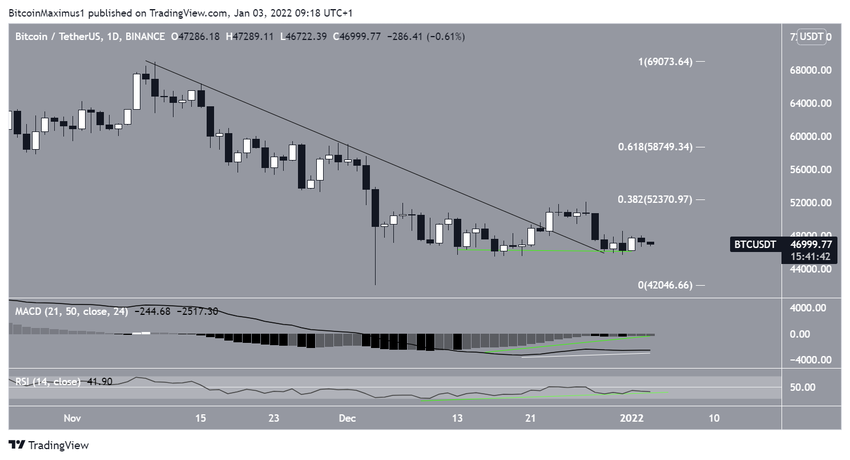 Биткоин ощутимо просел по итогам недели с 27 декабря по 2 января, отметив локальный минимум на $45 678. Впрочем, BTC смог совершить отскок и закрыться на $47 286. Это стало очень значимым моментом, поскольку так цене удалось избежать нейтрализации предыдущей свечи бычьего поглощения.