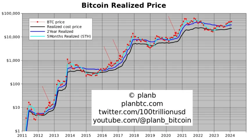 Известный биткоин-аналитик PlanB предложил оптимистичный прогноз, обратив внимание на растущую цену реализации — метрику, отражающую среднюю цену, по которой исторически торговался BTC. По его мнению, текущий тренд указывает на импульс, напоминающий ранние фазы предыдущих бычьих рынков.