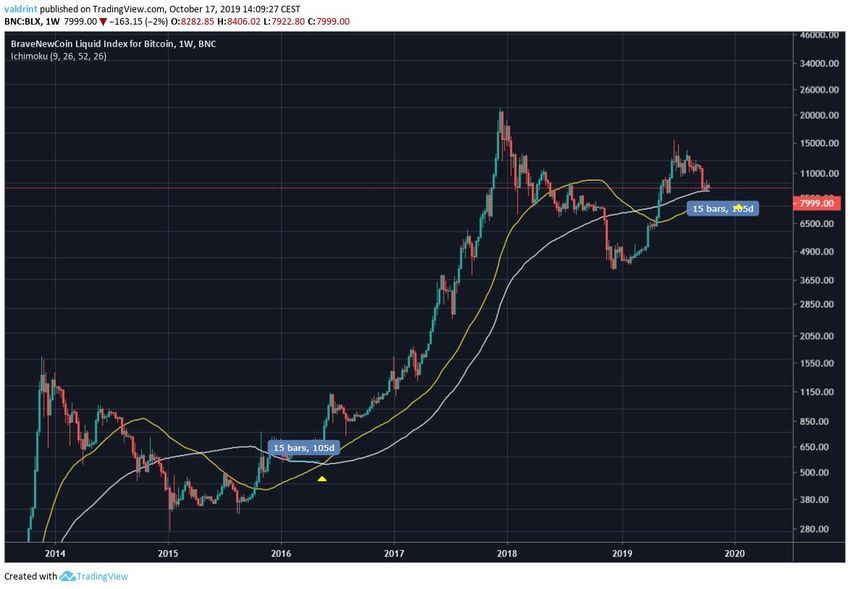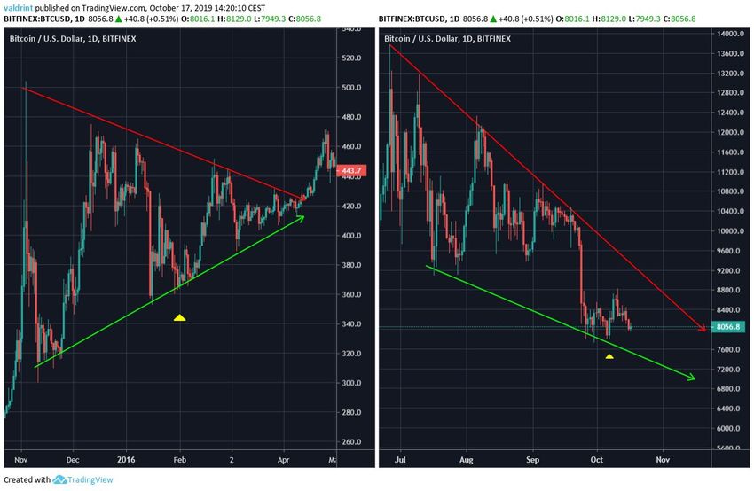 Если ценовая динамика повторяет сценарий 2016 года, то в январе 2020 года мы должны увидеть бычье пересечение вышеупомянутых МА. Это станет окончательным подтверждением стартовавшего восходящего тренда.