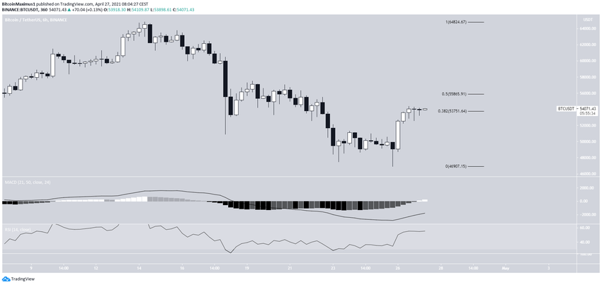 Биткоин возобновил восходящую коррекцию, начавшуюся 26 апреля. Криптовалюте удалось вплотную подойти к отметке $55 000