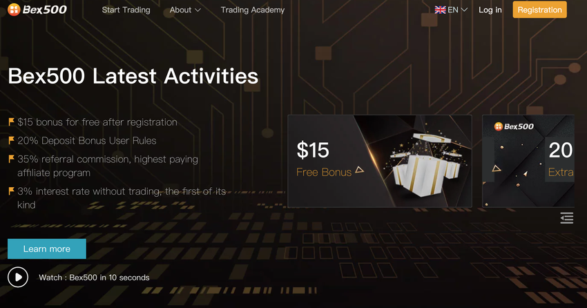 Присоединяйтесь к Bex500 сейчас и получите бонус в эквиваленте $15 в BTC или USD. Его можно использовать для торговли на рынках форекс, сырья и криптовалют. Внесите BTC или USD на свой счет Bex500 и получите дополнительный бонус 20%.