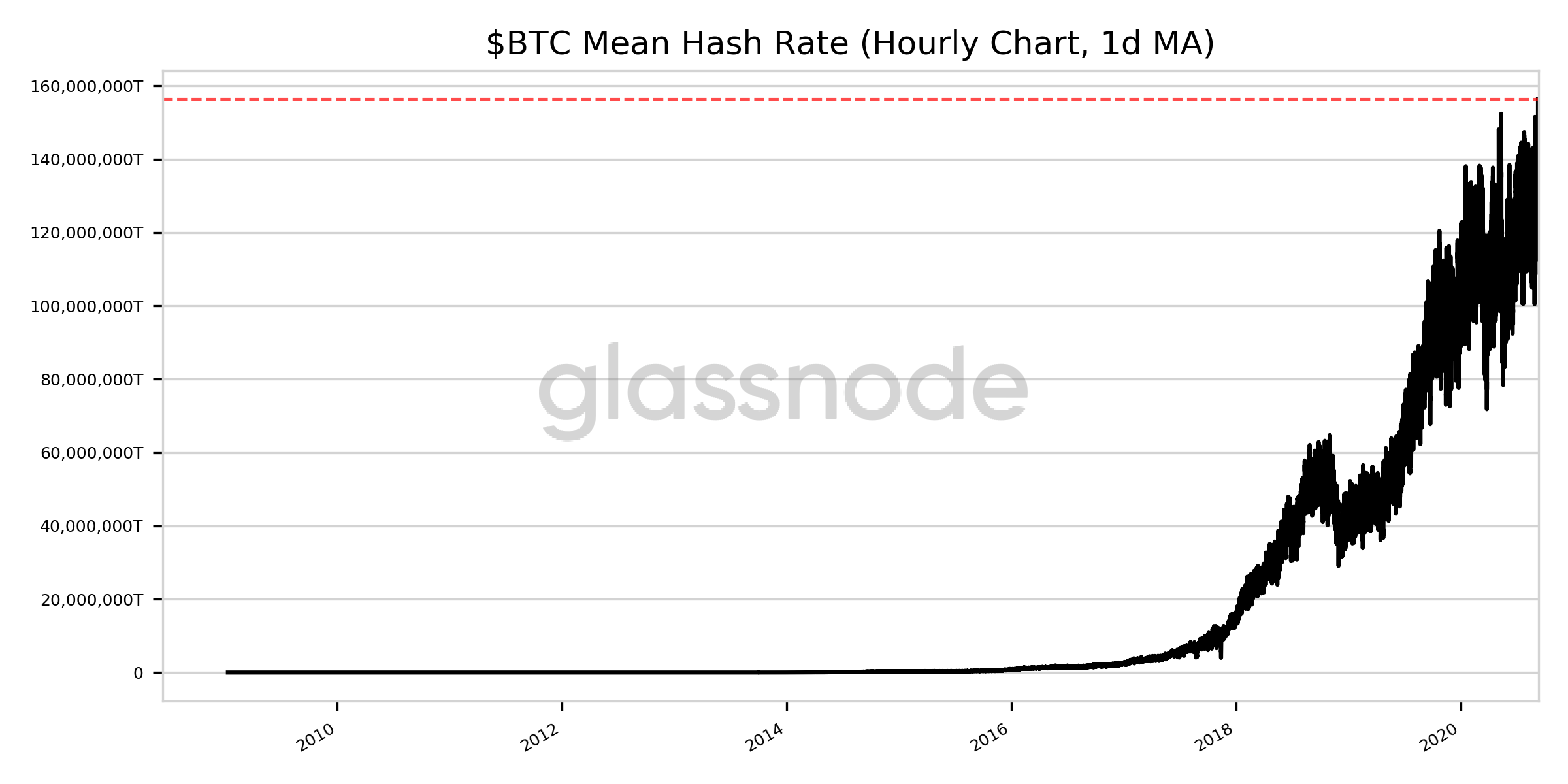 Примечательно, что на фоне снижения стоимости биткоина, среднесуточный хэшрейт криптовалюты достиг максимального значения на высоте 156,364,761,518,986,067,968.