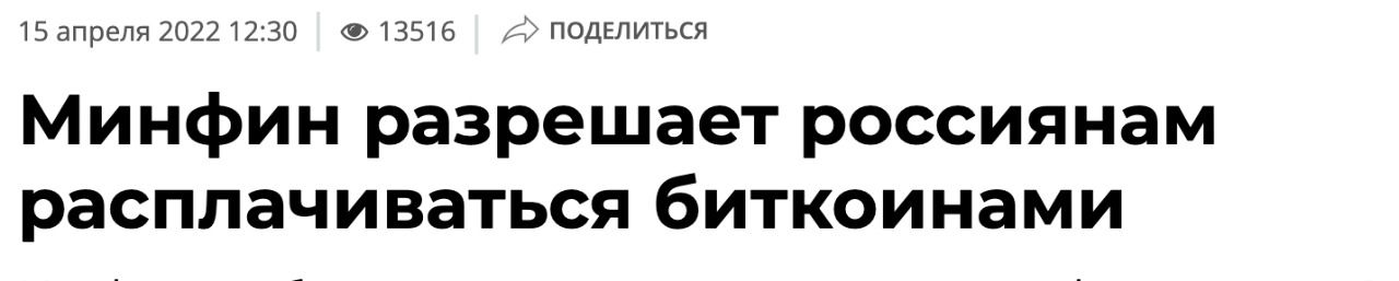 Возможно, это позитивный и где-то даже бычий момент для рынка, но все же заявлять, что Россия разрешит платить криптой как минимум сильное преувеличение.