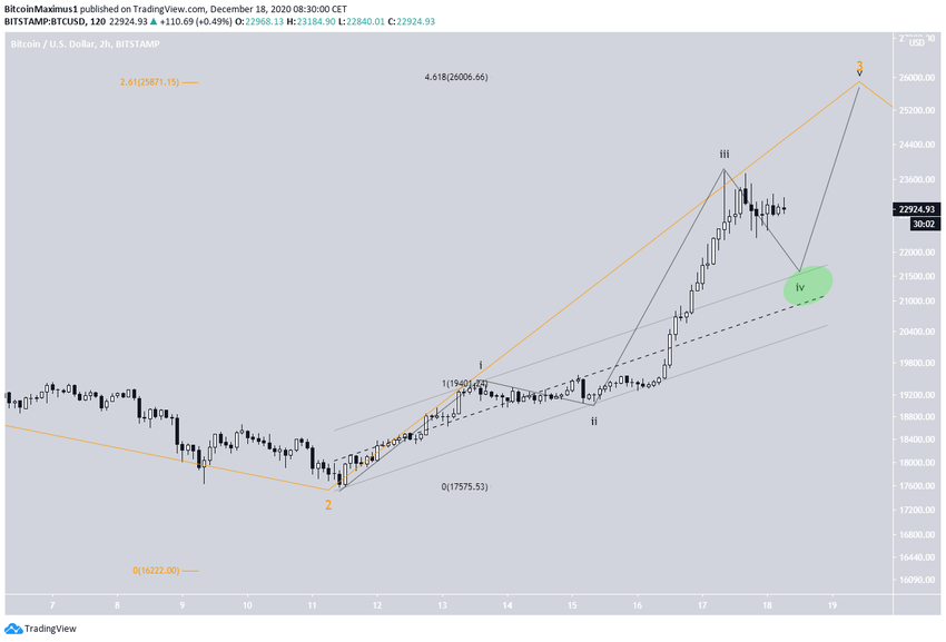 Во вторник мы предположили, что курс BTC находится в долгосрочной 5-й волне, которая может завершиться в районе $26 000.