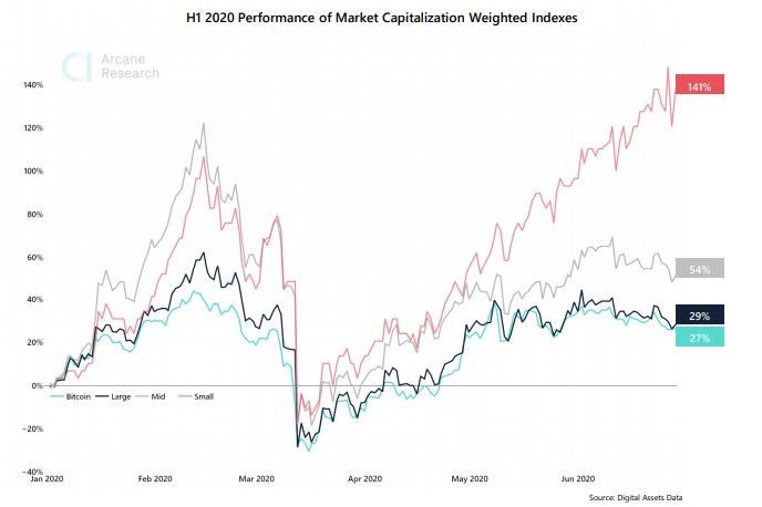 Кроме того, альткоины с малой капитализацией показали значительный рывок на рынке криптовалют. После краха 12 марта 2020 года капитализация мелких альткоинов выросла на 141%. Это больше, чем ВТС и все его форки вместе. Такой стремительный прогресс может свидетельствовать о наступлении эры альткоинов.