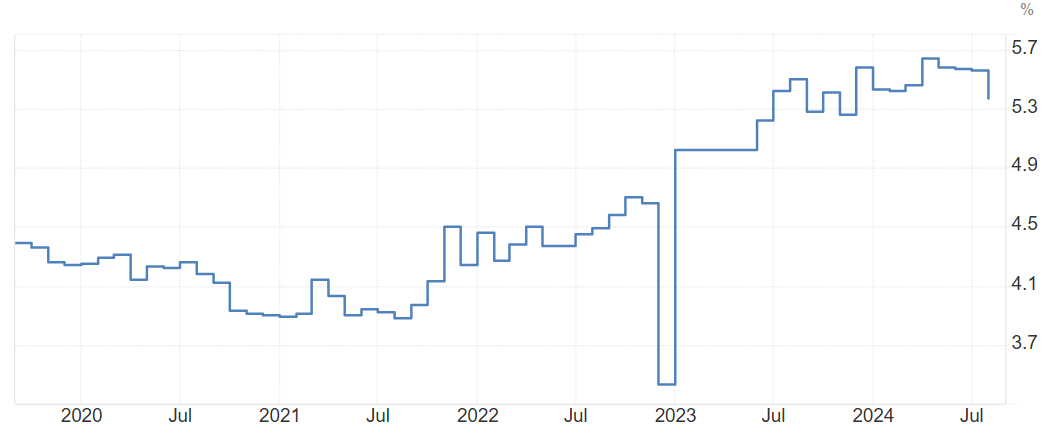 Ключевая процентная ставка, напротив, выросла. Если в 2021 году метрика колебалась близ 4%, то в 2024 году она приблизилась к 6%.