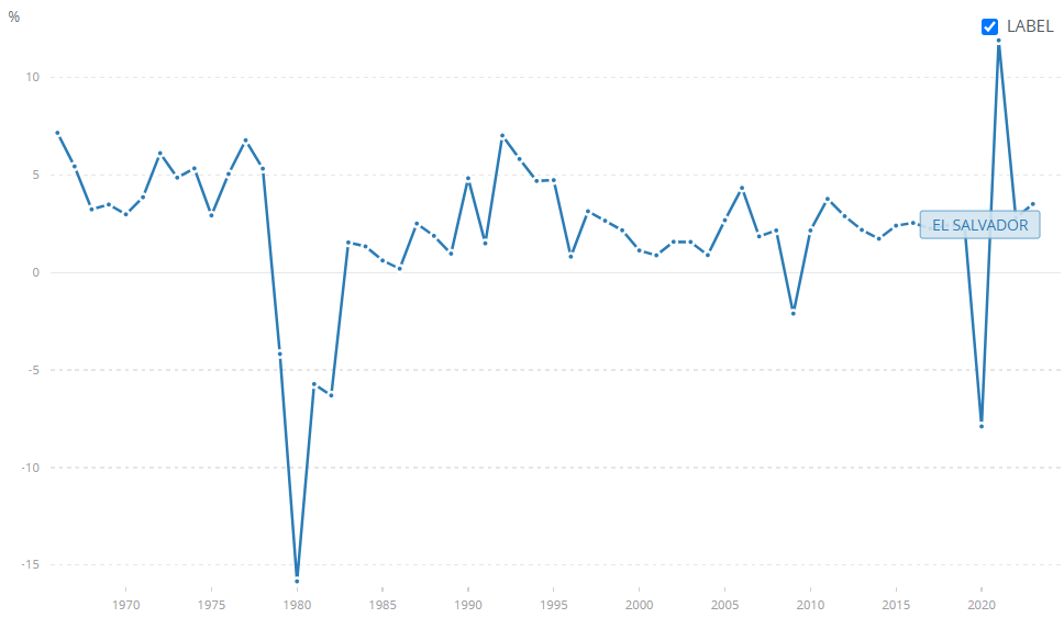 ВВП Сальвадора по итогам 2023 года оказался ниже показателей 2021 года, но выше результата 2022.