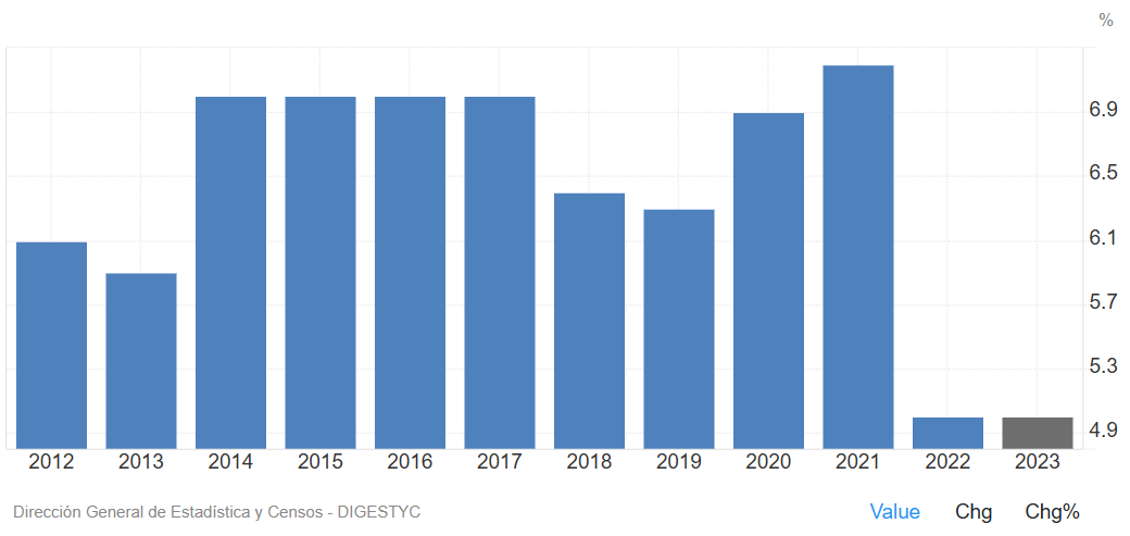 Уровень безработицы в Сальвадоре снизился. Если в 2021 году показатель находился на уровне 7,2%, то в 2022 и 2023 годах он составил 5%. Напомним, метрика показывает долю безработных среди трудоспособного населения, что отражает состояние рынка труда.