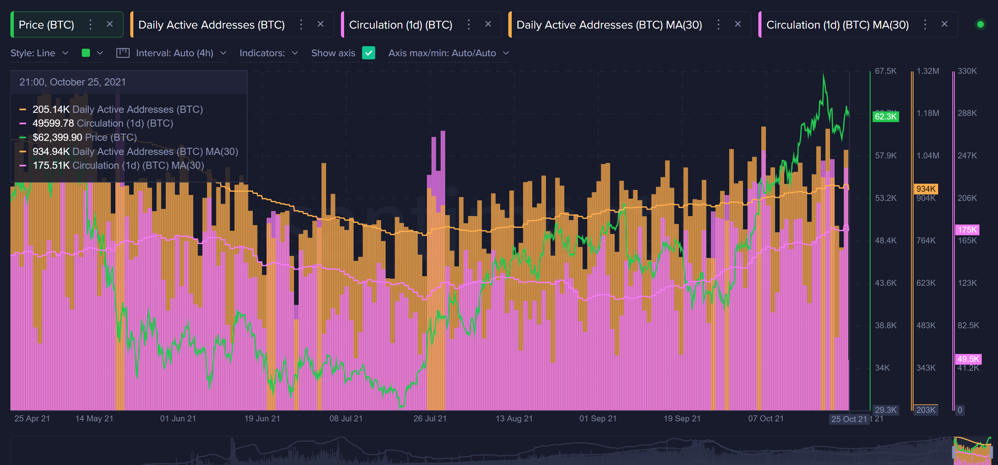 Активность адресов сохраняет умеренные показатели, а метрика рыночной стоимости к реализованной дает простор для дальнейшего роста биткоина